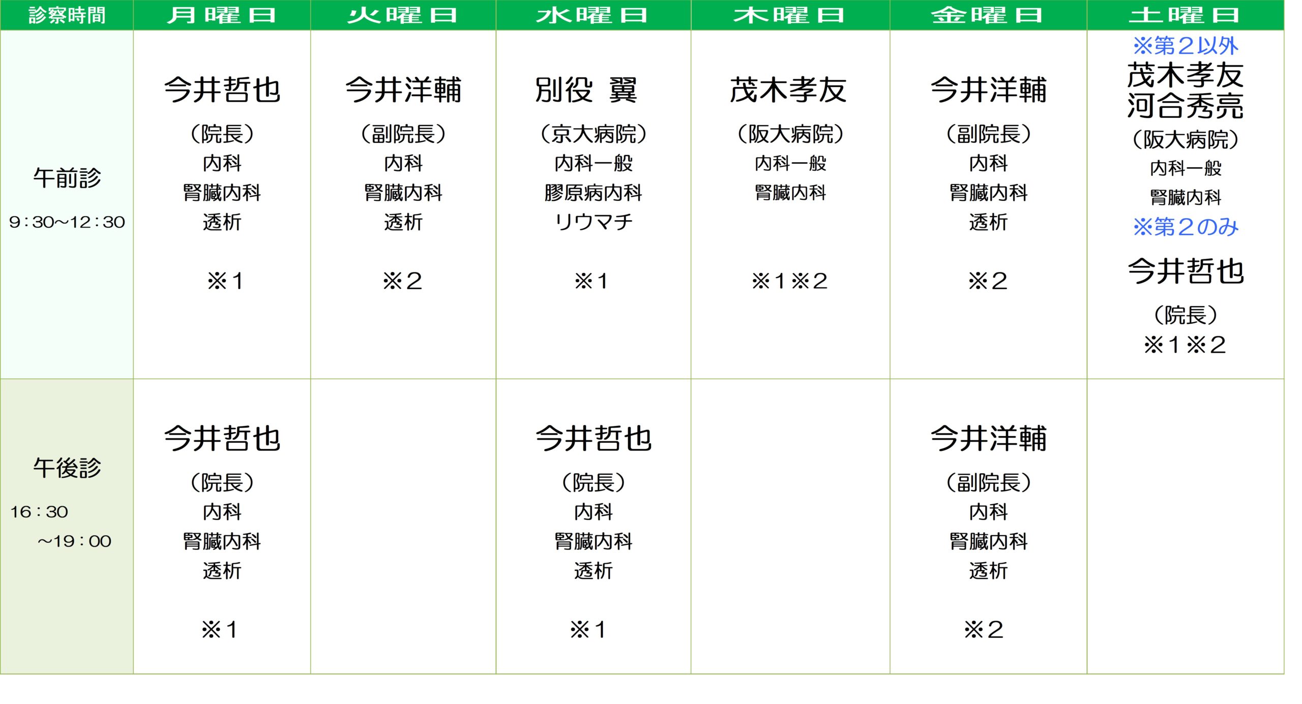 ※1:今井洋輔 副院長 ※2:今井哲也 院長 ※1※2:当番制